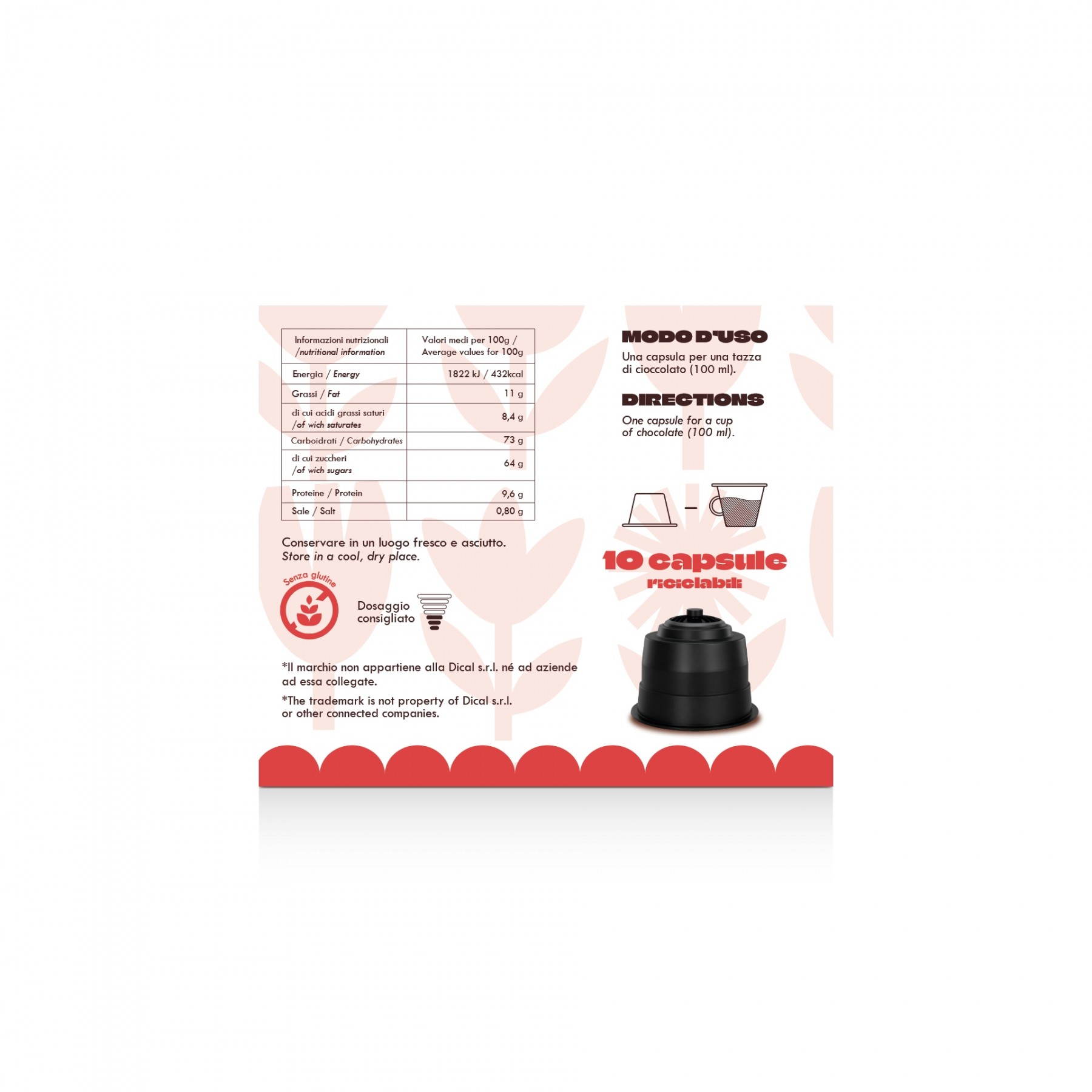 * I marchi Nescafè®️ , Dolce Gusto®️ contrassegnati dall’asterisco sono marchi registrati appartenenti ai rispettivi registranti. I marchi sopra indicati non appartengono a Dical s.r.l. nè ad aziende ad essa collegate. La compatibilità delle capsule prodotte da Dical s.r.l. è funzionale all’utilizzo con le relative macchine da caffè ad uso domestico. - Ulteriori informazioni